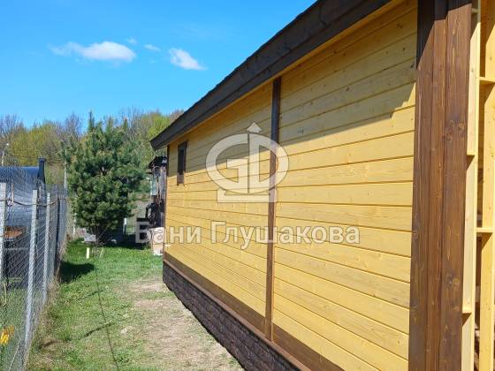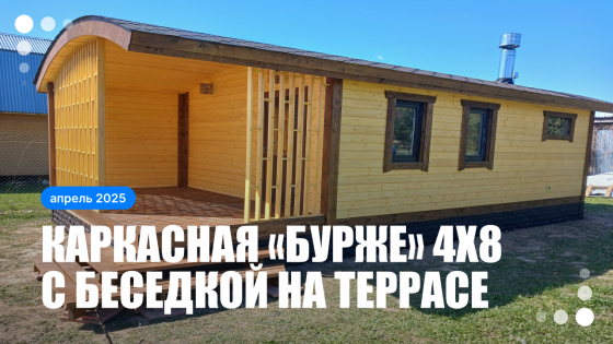 Завершили строительство бани «Бурже» размером 4 × 8 метров — стильной, продуманной и полностью готовой к отдыху.