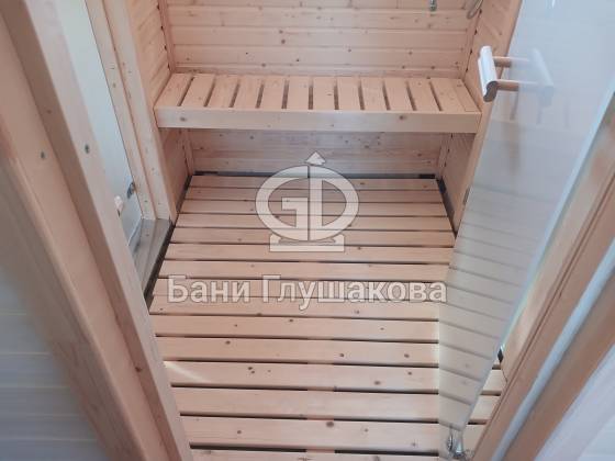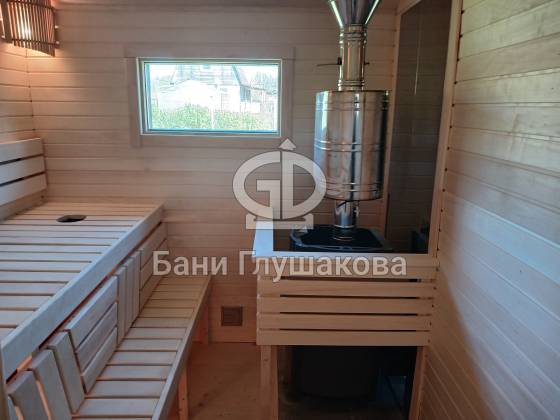 Баня «Бурже» собрана под ключ, с полной отделкой и готова к использованию сразу после установки.