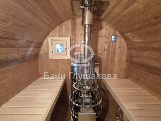 Компактная баня длиной всего 3 метра идеально подойдёт для небольших участков, дач и временного размещения. Внутри — всё необходимое для настоящего банного отдыха: небольшая парная с дровяной печью и тамбур для переодевания.