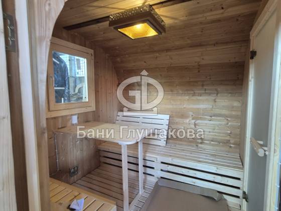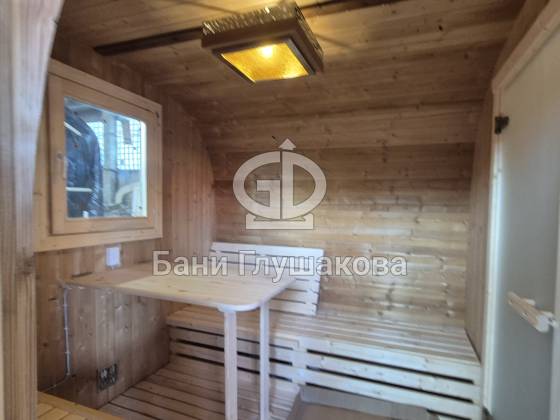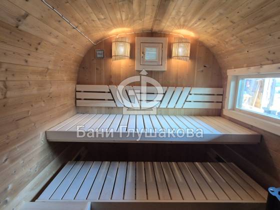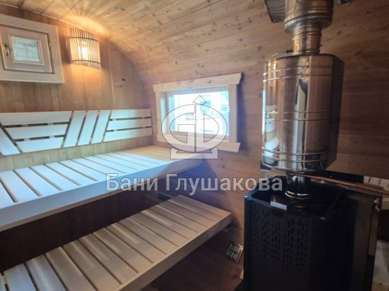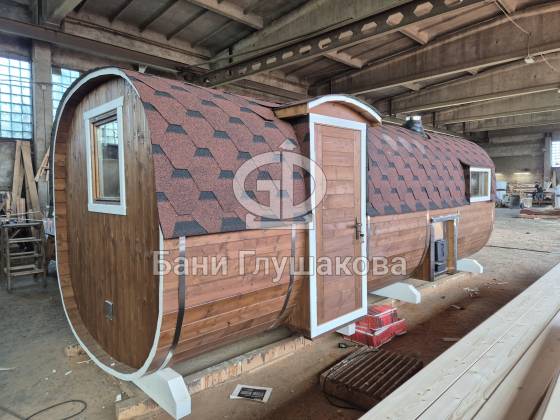 Мы построили ещё одну отличную баню-бочку — теперь в размерe 2,3 × 5,9 м.