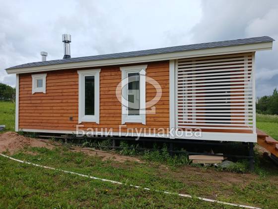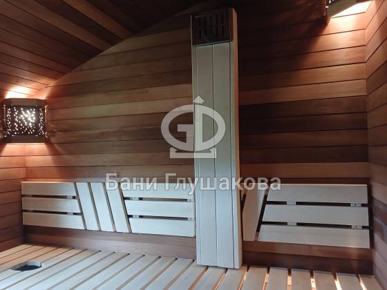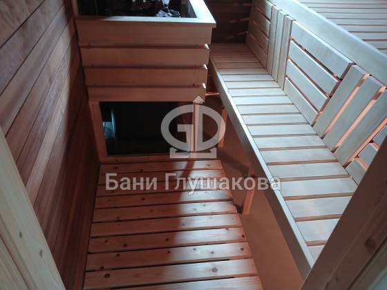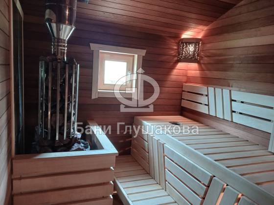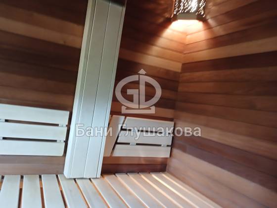 Главное здесь — сама баня. Уютная, технологичная, с шикарной отделкой и продуманными решениями. Как и всегда у «Бани Глушакова», всё собрано с вниманием к деталям. И да, на любом участке она смотрится круто.