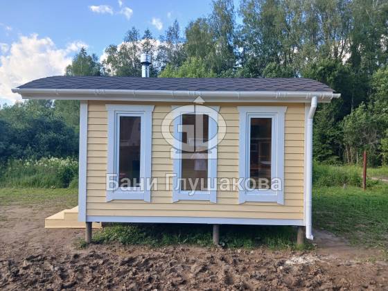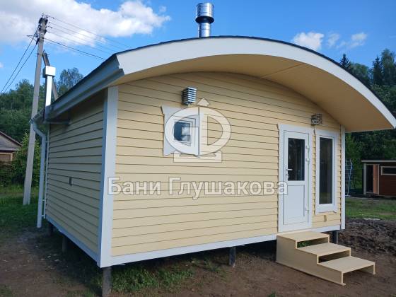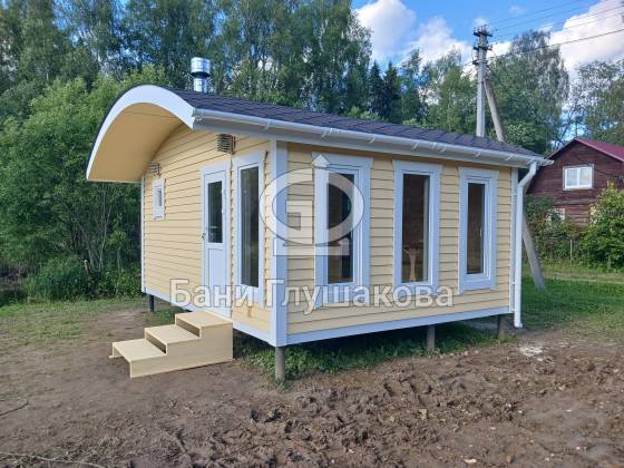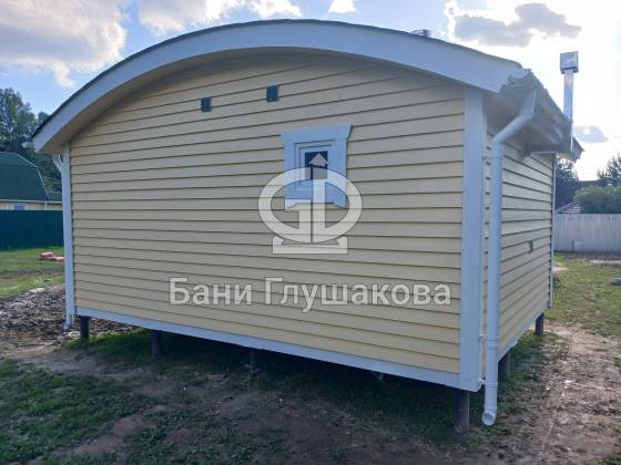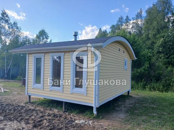 В разгаре лето: время горячего солнца, тенистых садов и неспешных вечеров на загородном участке. Именно для таких дней и была построена эта живописная баня «Бурже» каркасной сборки в нежном пастельно-жёлтом цвете с белыми акцентами. Она словно создана, чтобы вписаться в уютный дачный пейзаж и подарить вашей семье комфорт и удовольствие.