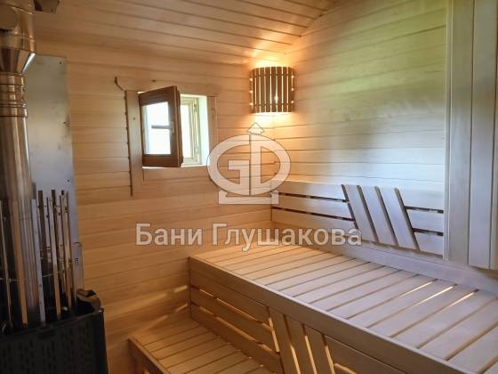 При желании можно предусмотреть санузел, а материалы строительства — выбрать на свой вкус: клеёный брус или каркасную технологию с утеплением от 100 до 150 мм.