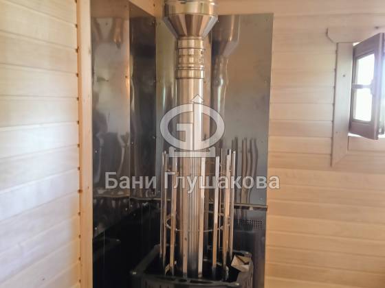 Представляем новый объект из линейки «Бурже» — современную просторную баню размером 4×8 метров с угловой террасой и выносной топкой. Благодаря продуманной планировке и большим размерам эта баня легко превращается в полноценное место для отдыха, где хватит места и для семьи, и для друзей.