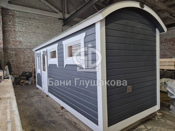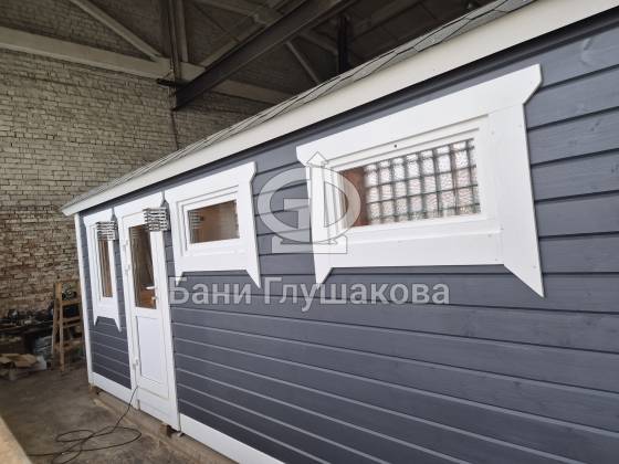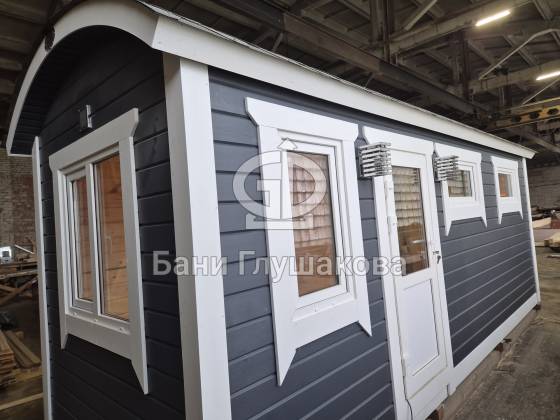 Такая баня станет настоящим украшением вашего участка, добавив ему европейского шарма и функциональности. Представляете, как эффектно она будет смотреться на фоне зелени или зимнего пейзажа?
