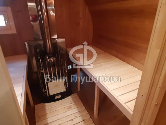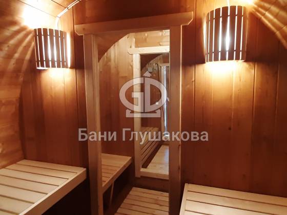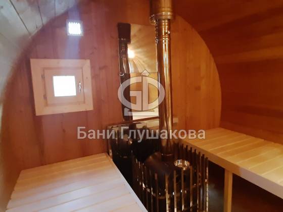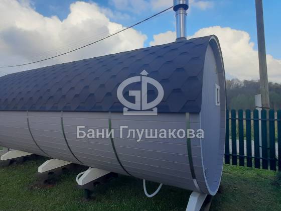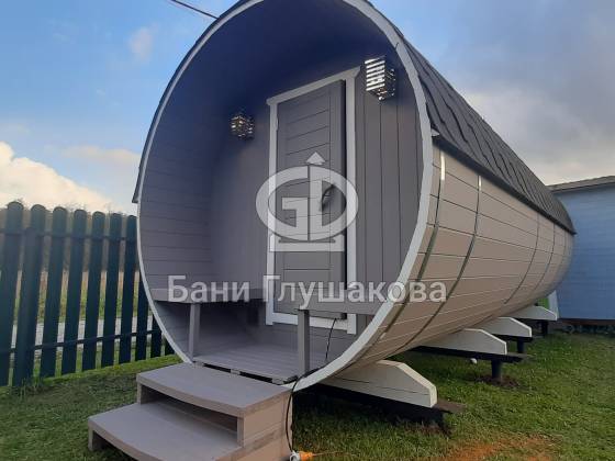 Круглая баня бочка 2,4 на 5,9 метров из термодерева