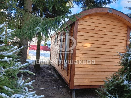 Под лёгким инеем обводка смотрится ещё выразительнее, а округлые линии бани становятся мягкими, как будто нарисованными кистью. И в этот момент особенно понимаешь, ради чего создаются такие проекты — чтобы в любую погоду дарить тепло. Чтобы хотелось быстрее открыть дверь, вдохнуть аромат дерева и услышать, как в парной бережно нагревается воздух.