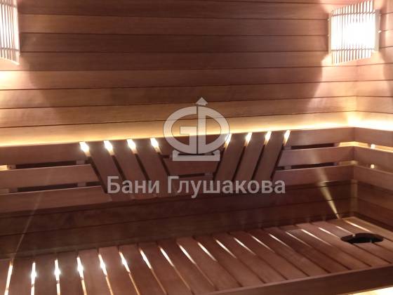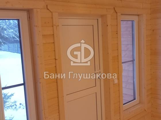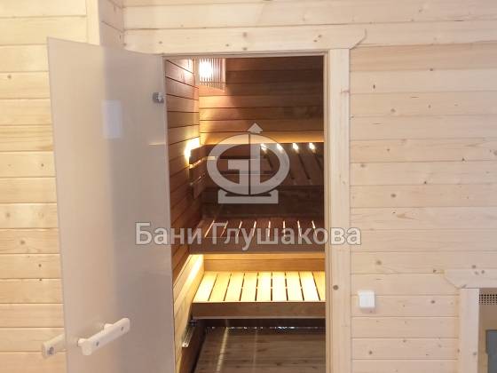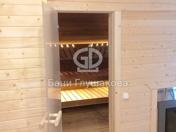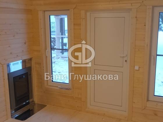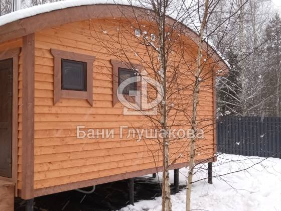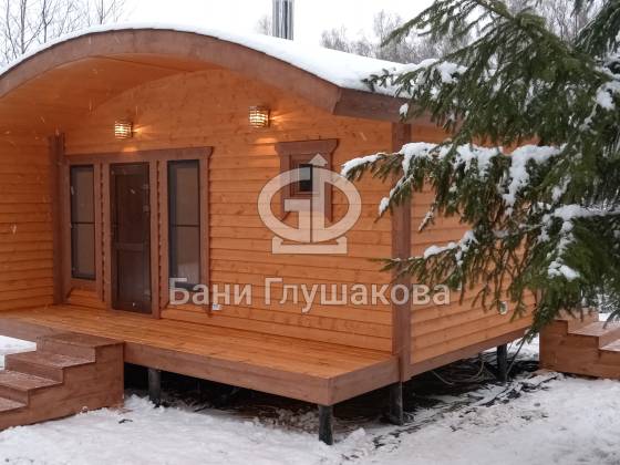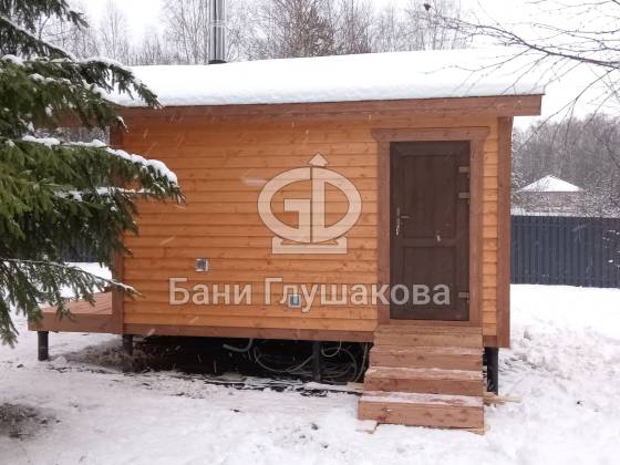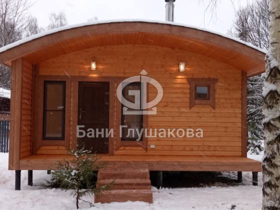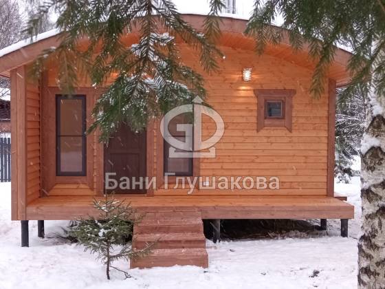 Каркасная баня «Бурже» с террасой и крыльцом