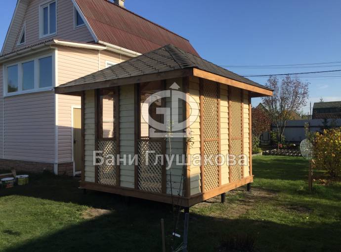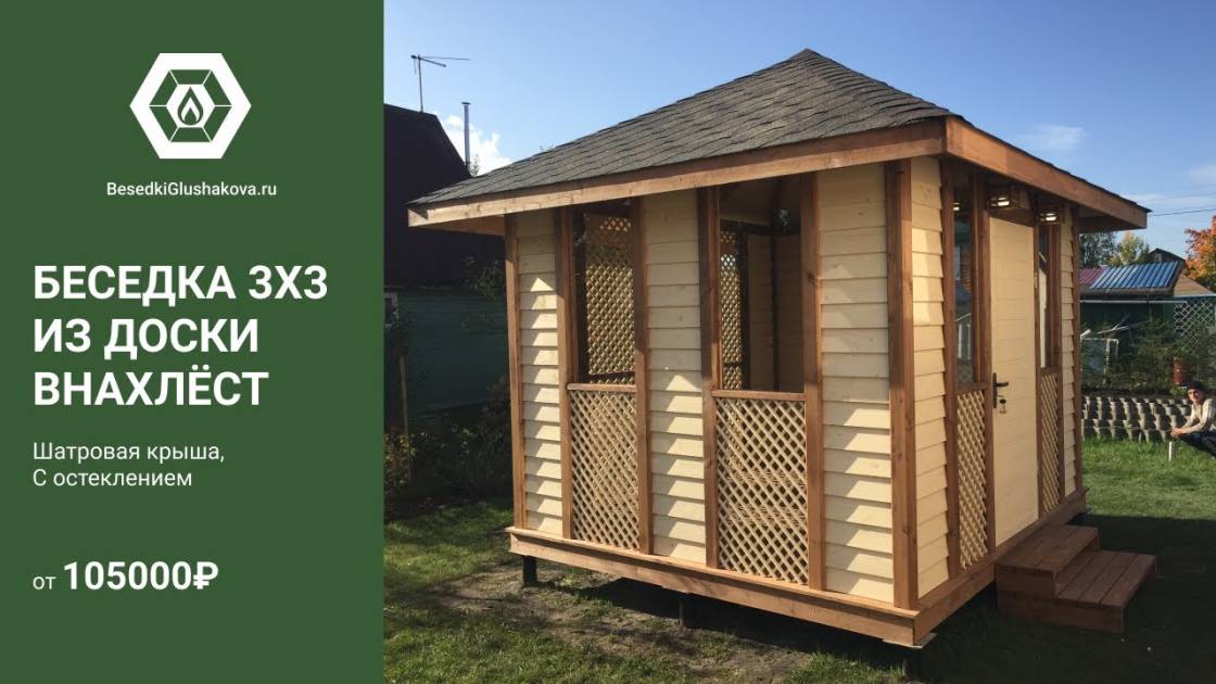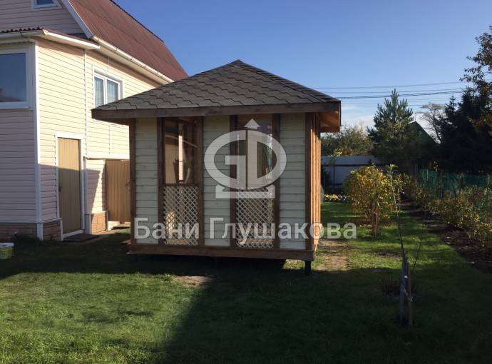 Закрытая беседка 3х3 с отделкой «ёлочкой»