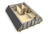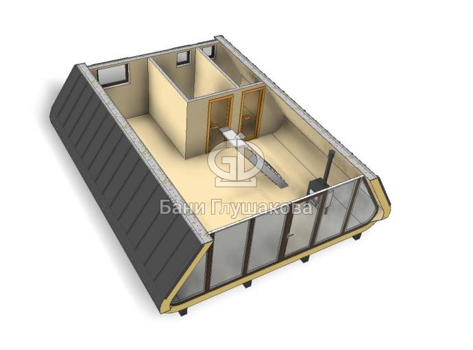Планировка может включать в себя комнату отдыха, сауну, душевое помещение, санузел, спальный второй ярус. Возможны разные варианты на выбор Заказчика.