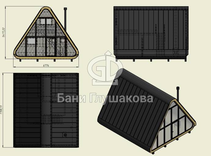 Базовый размер 6 на 7,7 метров. По поводу изменений площади нужно разговаривать отдельно, потому что в стандартном проекте чётко рассчитана нагрузка на каркас и основание, а также выбрано оптимальное соотношение высоты к площади.