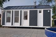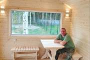 Баня-барн в стиле Дмитрия Глушакова имеет свои неповторимые особенности. Так мы усовершенствовали классический дизайн барнхауса и оформили окна на свой манер. Они получились «слегка утопленными» в стены благодаря декоративным накладкам.