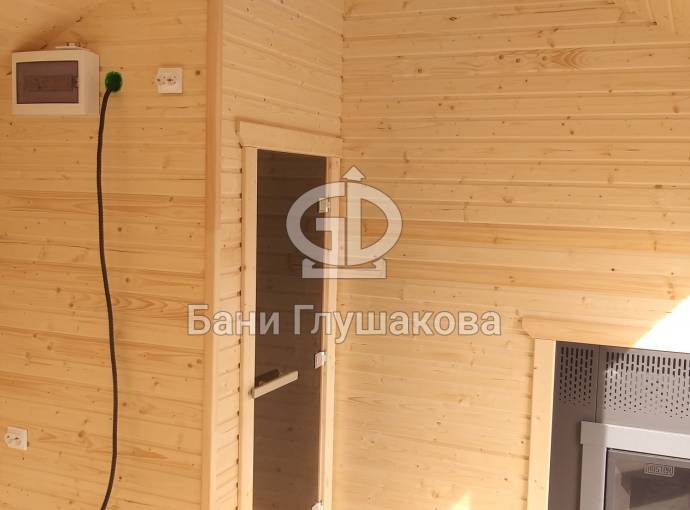 Входит в стоимость. Включает светильники в каждом помещении, вводный автомат, негорючий провод в парную, розетка в комнате отдыха (в банях-бочках розетка устанавливается по требованию).