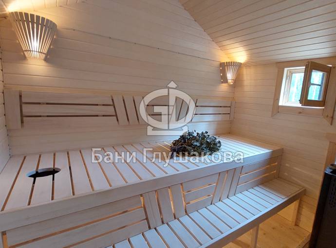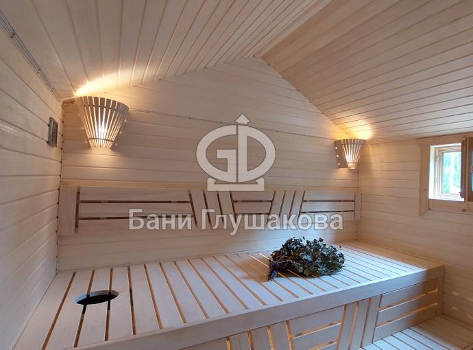 Можно установить светильник потолочный в комнате отдыха, ссылка на все фото тут, помещается в бани бочки увеличенного диаметра, в Буханочки и Бурже, беседки