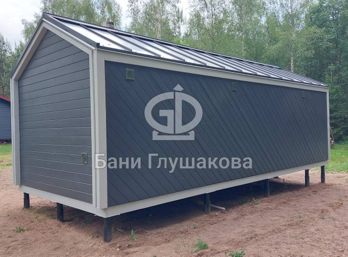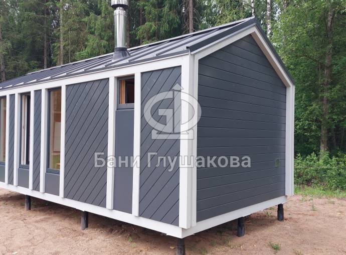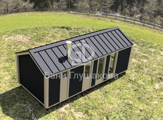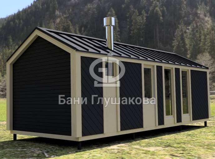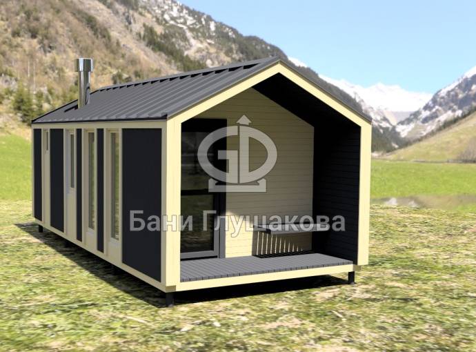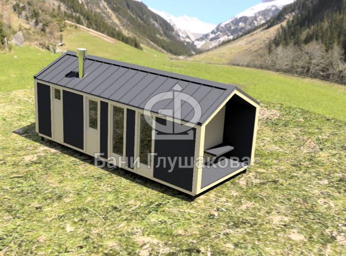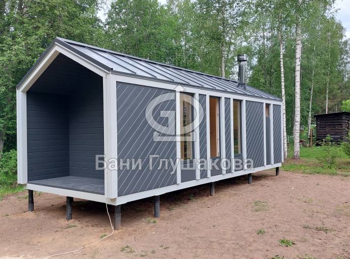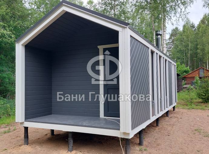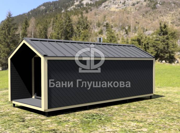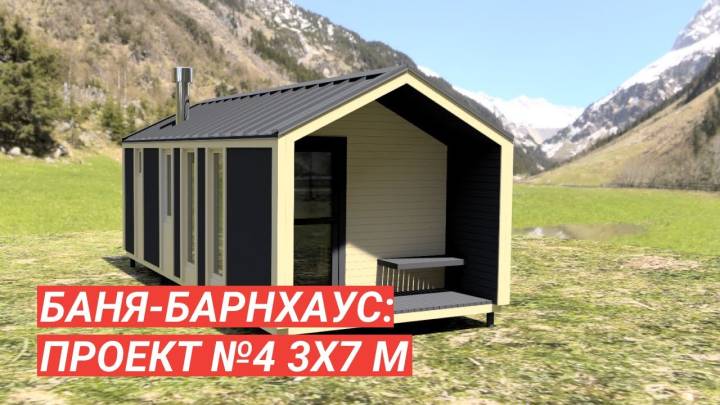 Каркасная баня в стиле «Барнхаус» 3х7 м с террасой