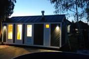 Передний фасад имеет стеклянную дверь-стеклопакет на входе — получается большое панорамное окно с выходом на маленькую террасу.