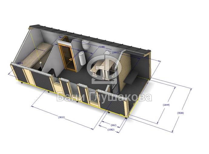 * Внимание! В характеристиках и опциях указана нестандартная комплектация бани. Вы можете заказать повтор или выбрать доп.опции для формирования собственной комплектации.
