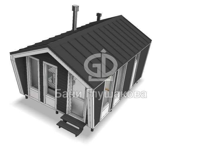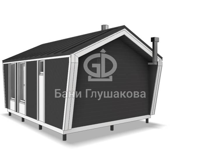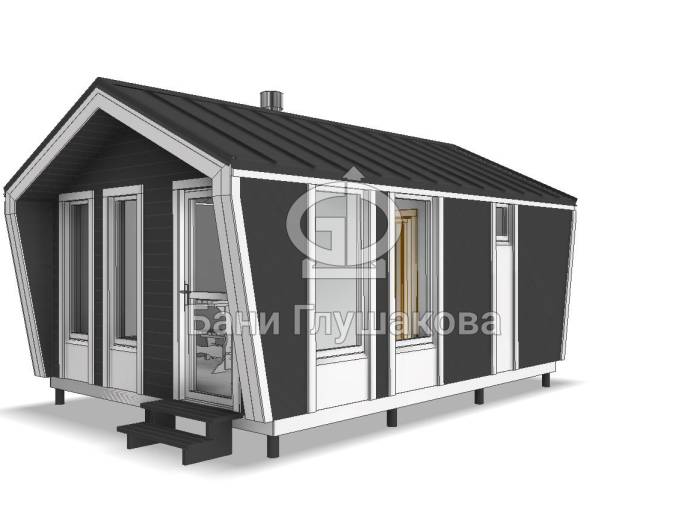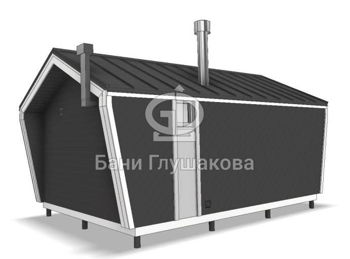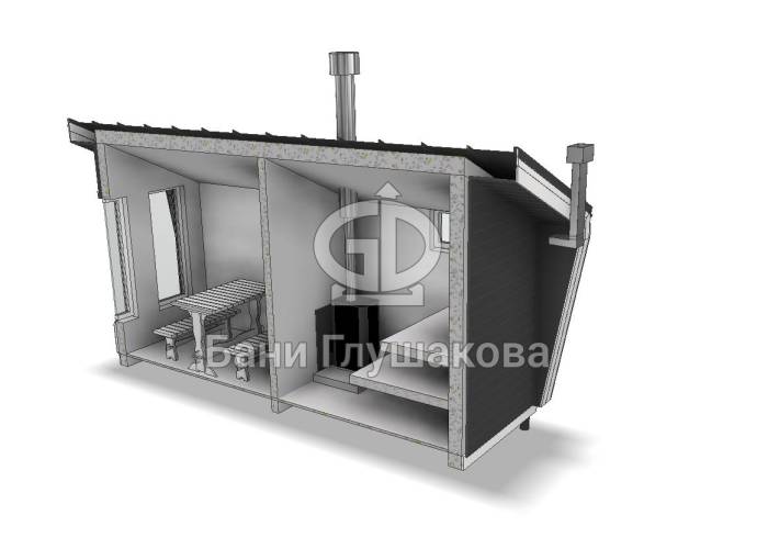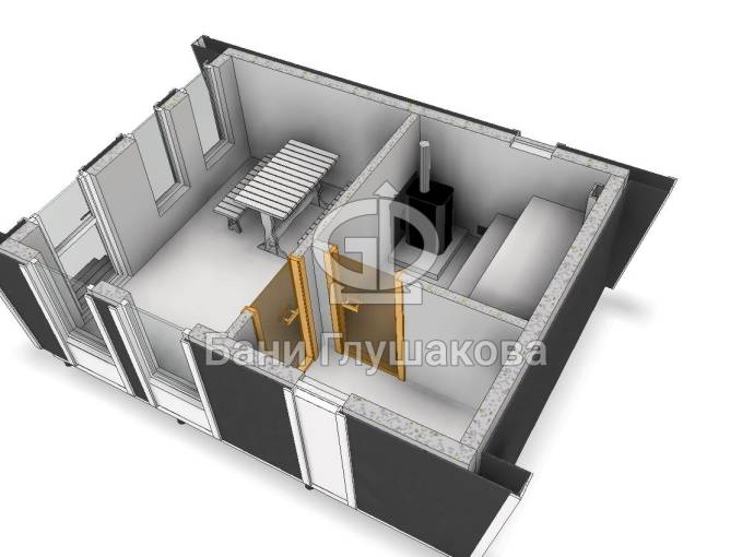 Внутри 4 помещения: комната отдыха, парная, душевое помещение и бойлерная (здесь же можно сделать санузел).