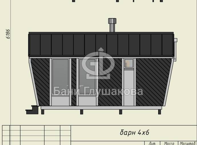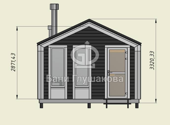 Стандартный размер 4 на 6 метров. По желанию клиента длину можно увеличить, но вот ширина должна остаться такой же — от неё зависят конструкционные особенности бани.