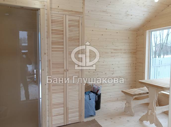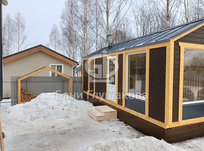 Внутри 3 помещения: комната отдыха, душевое помещение и парная. Всё с полной отделкой под ключ.