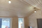 Сборка выполнена по каркасной технологии. Наружная отделка планкеном и сухой доской — такое сочетание позволяет добиться эффектного «амбарного» вида.