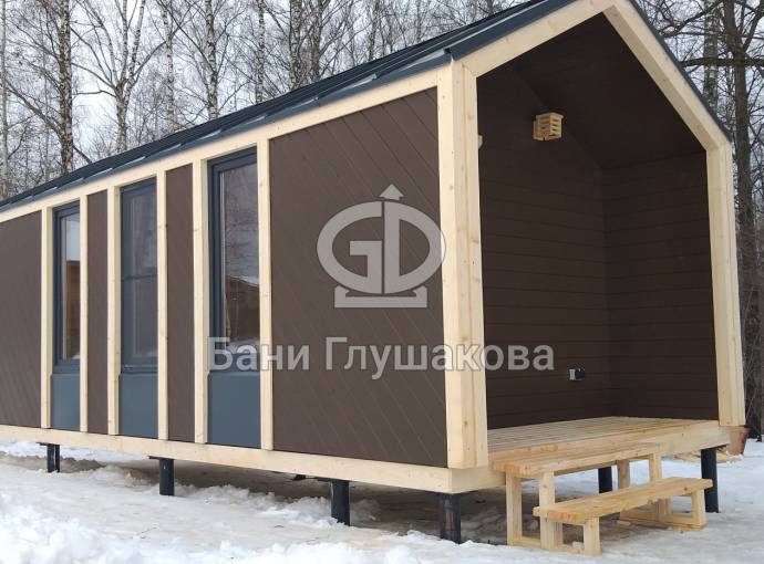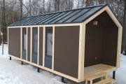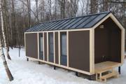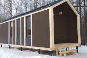 Этот проект можно использовать в качестве садового домика, гостиничного номера на базе отдыха или приспособить под хозяйственные нужды на участке. Условные габариты 3 на 7 метров, но можно попробовать поиграть с размером.