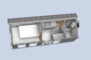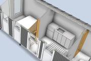 Внутри 3 помещения: кухня с обеденной зоной, спальня и санузел с душем.