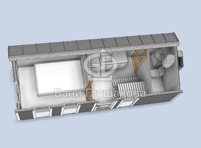 Перевозной формат накладывает свои ограничения на габариты. Размер домика 2,5х6,7. Если делать больше, то строить придётся на участке.