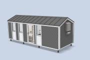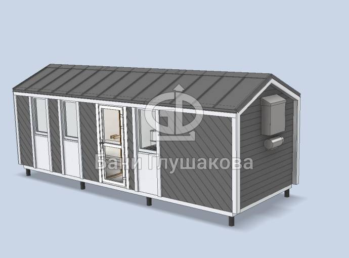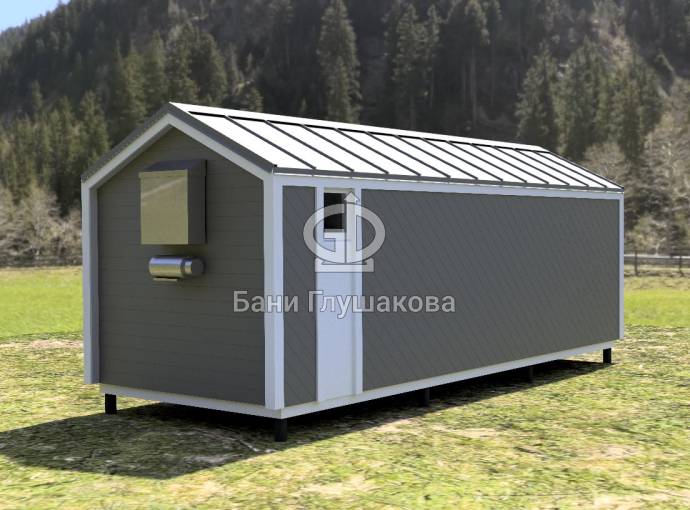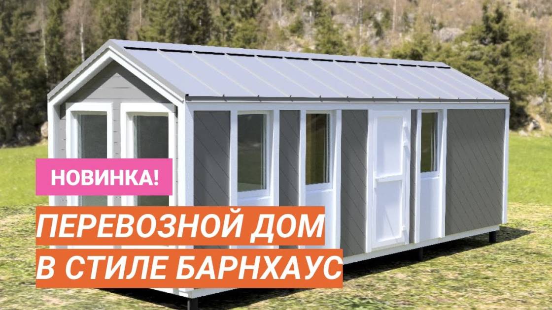 Разработан проект для строительства перевозных домиков в стиле барнхаус. Делали под коммерческий объект — планируется сдавать эти домики на период летнего отдыха на базе отдыха в Крыму. Также можно построить такой в качестве летней дачи.