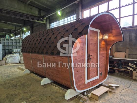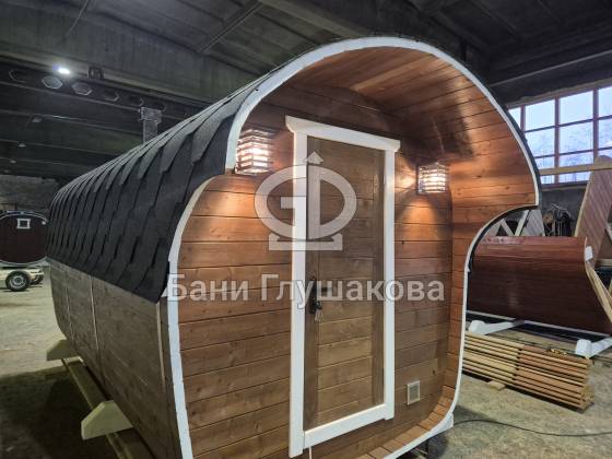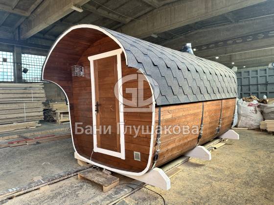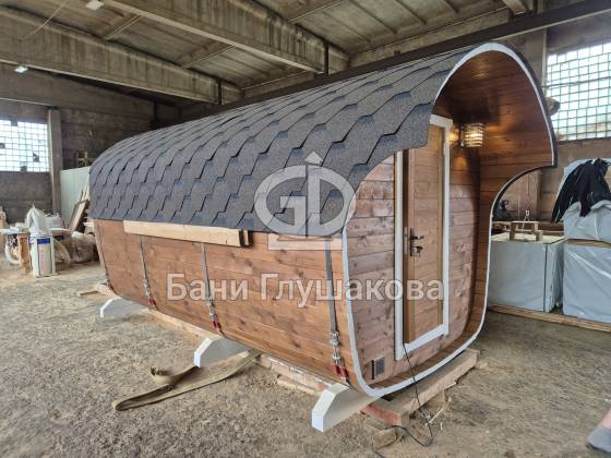 2024 год мы не оставим без новой линейки бань. Рады представить вам «Сказку» – баню-бочку оригинальной формы. Благодаря расширяющейся форме внутри больше места.