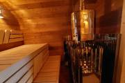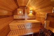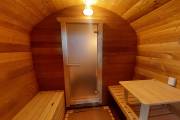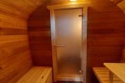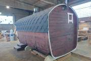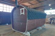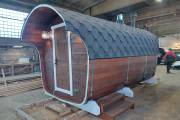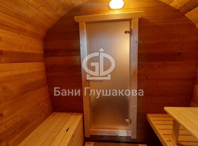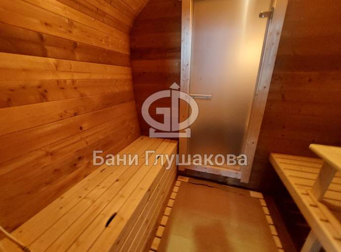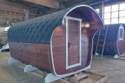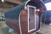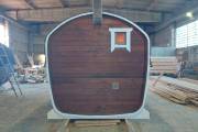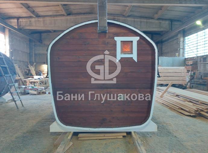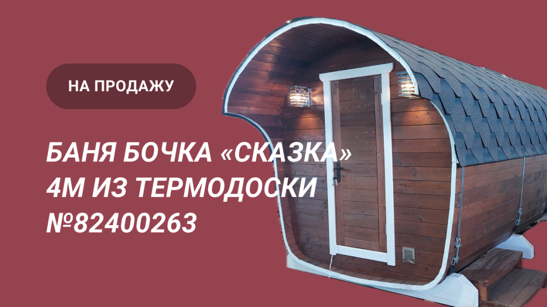Готова новая баня бочка «Сказка» №82400263. Баня сделана из отсортированной термодоски с небольшими косметическими изъянами.