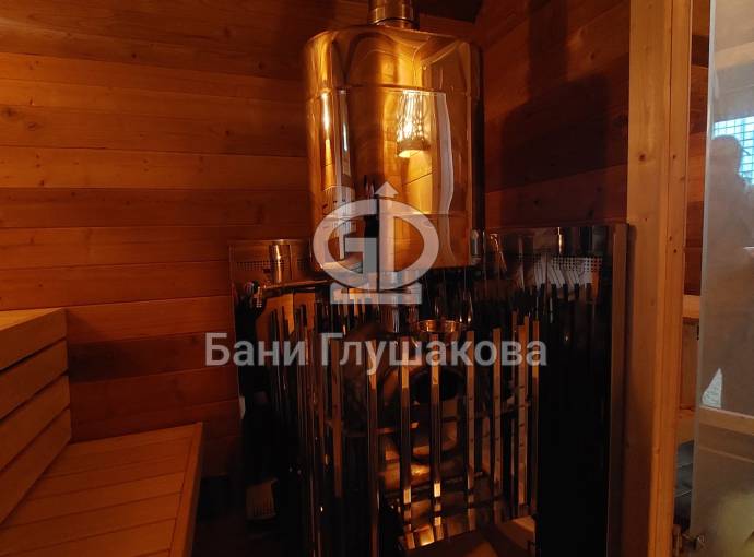 В стоимость уже входит сборка, печь «ГИД 4» нашего производства с парогенератором, электрика, металлические уличные светильники, ступеньки. Вокруг печи стоит металлический экран.