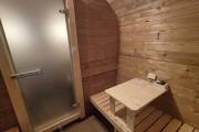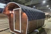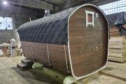 Рады представить вам «Сказку» – баню-бочку оригинальной формы. Благодаря расширяющейся форме внутри больше места.