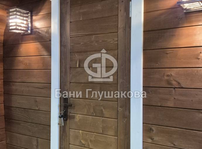 Снаружи баня покрашена краской Сенеж Аквадекор в оттенке «Палисандр».