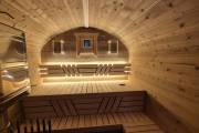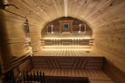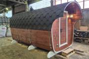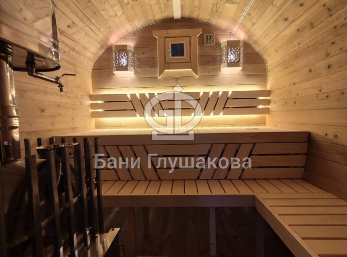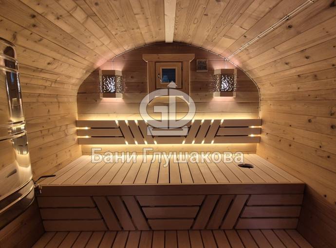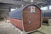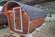 Рады представить вам «Сказку» – баню-бочку оригинальной формы. Благодаря расширяющейся форме внутри больше места.