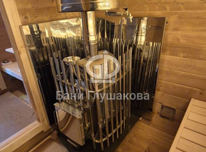 В стоимость уже входят печь «ГИД 4» нашего производства с парогенератором, электрика, металлические уличные светильники, ступеньки. Вокруг печи стоит металлический экран.