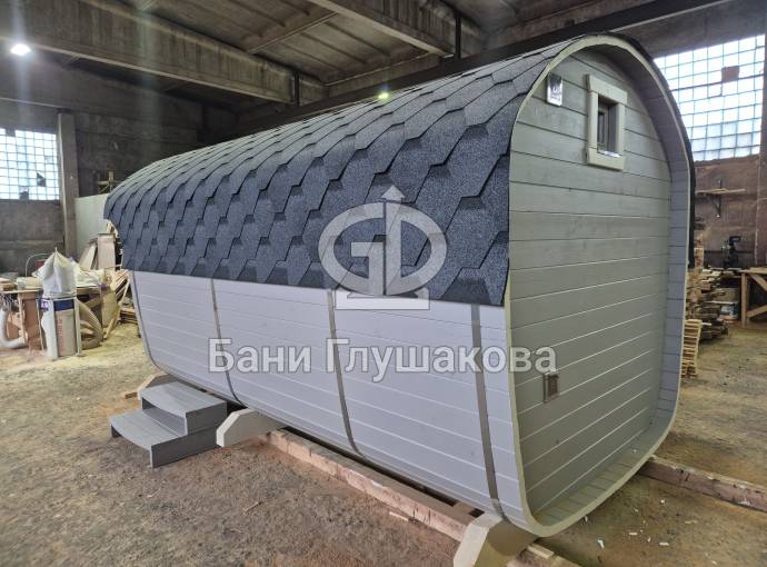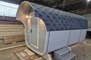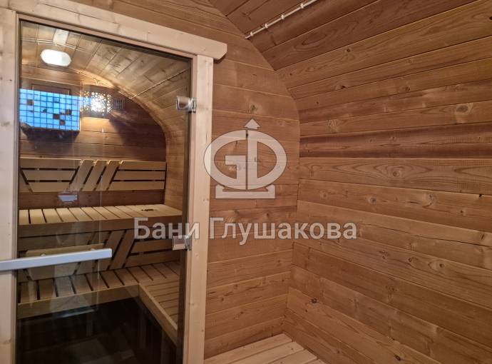 Размер — 2,4 × 4 метра, внутри — два продуманных помещения: комната отдыха и парная. Всё, как нужно, без лишнего.