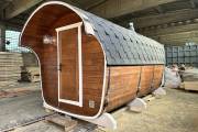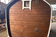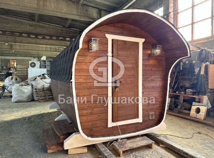 2024 год мы не оставим без новой линейки бань. Рады представить вам «Сказку» – баню-бочку оригинальной формы. Благодаря расширяющейся форме внутри больше места.