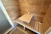 Баня изготавливается из термодоски. Размер 2,4 на 5,9 метра, внутри 3 помещения: комната отдыха, помывочная и парная.