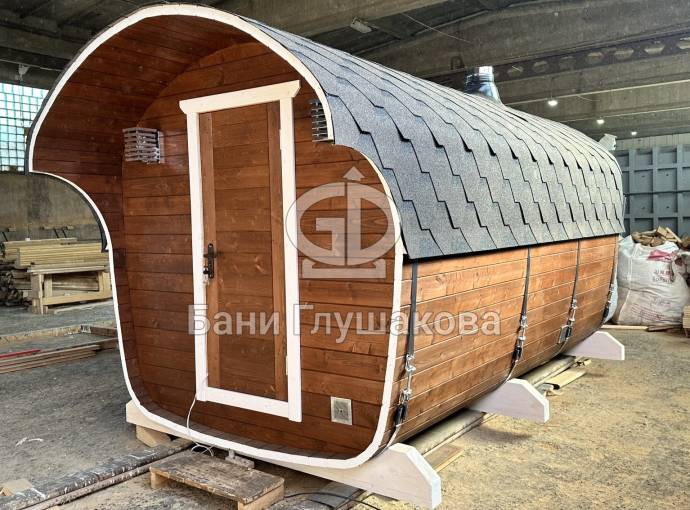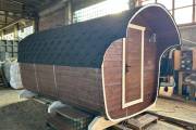 2024 год мы не оставим без новой линейки бань. Рады представить вам «Сказку» – баню-бочку оригинальной формы. Благодаря расширяющейся форме внутри больше места.