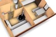 Можно установить насосную станцию, бойлер, бак, душ, устанавливается как в душевой комнате так и в маленькой бане, но уже слева или с права в комнате отдыха, а душ выводится в этом случае в парную.