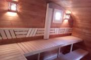 Можно установить один или более светильник у входной двери бани бочки снаружи, подробнее по ссылке, в комплект входит покраска его в цвет окантовки бани, подключение на отдельный выключатель, светодиодная лампа. Стоимость 1700 рублей за штуку