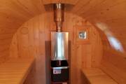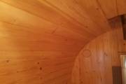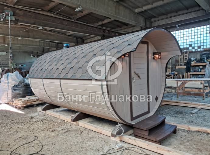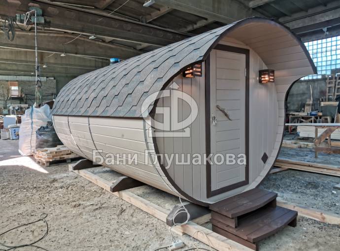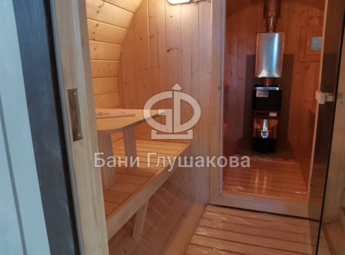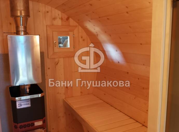 Баня изготовлена из еловой бочковой доски и доступна для покупки — держать на выставке мы её не планируем. Доставка, установка и подключение на любом участке Новгородской области и близлежащих областей типа Псковской и Вологодской осуществляется одним днём.