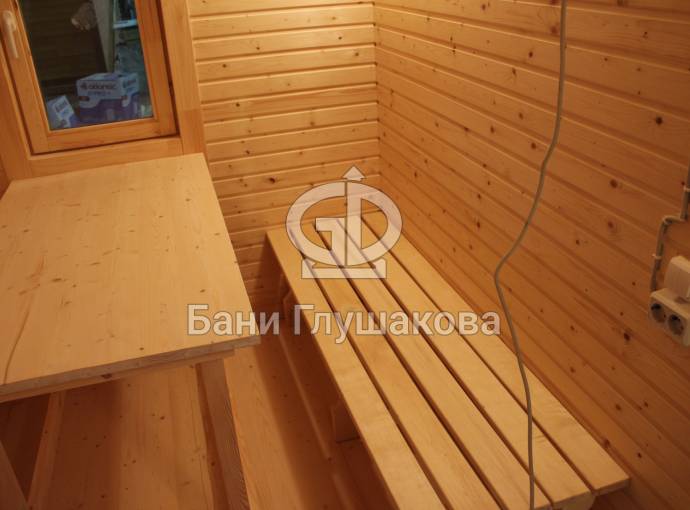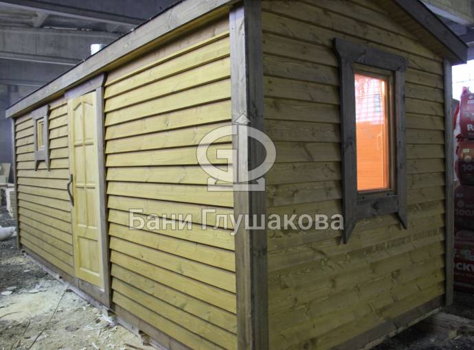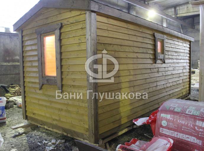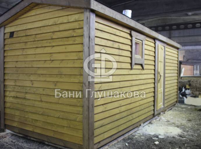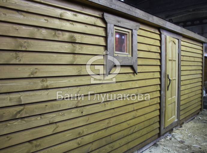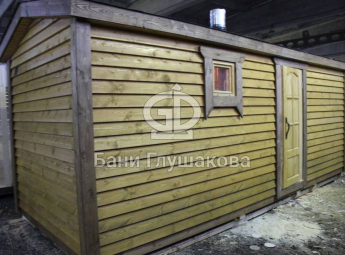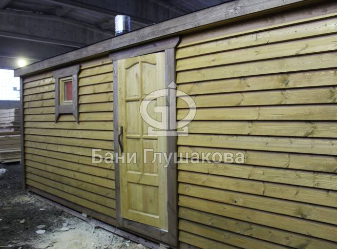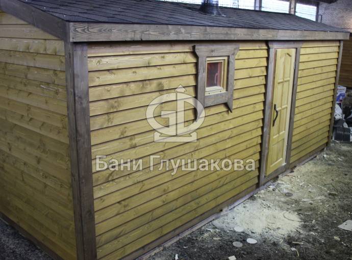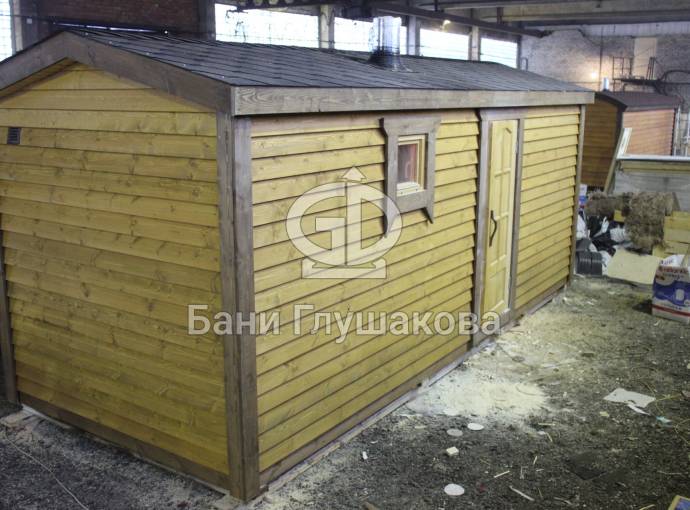 Эта баня была сделана и продана, она выставлена как пример возможного варианта исполнения.
