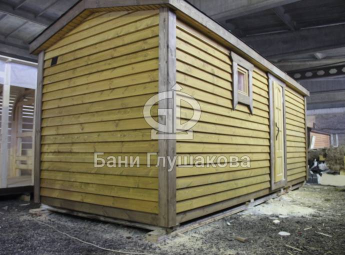 Первая модель классической линейки каркасных перевозных бань «Квадра». Собрана по образу простых перевозных бань в виде домика. В основе лежит брусовой каркас, который затем обшивается сухой каркасной доской 42 мм.