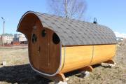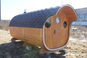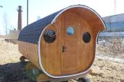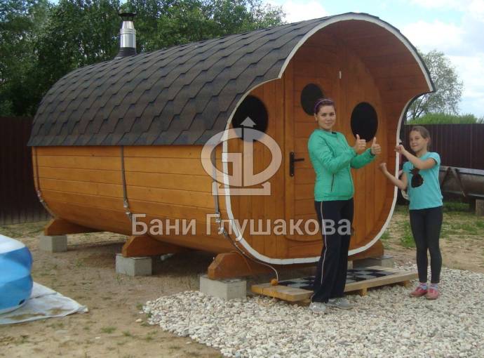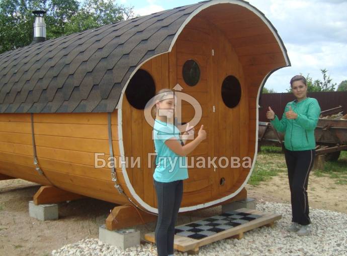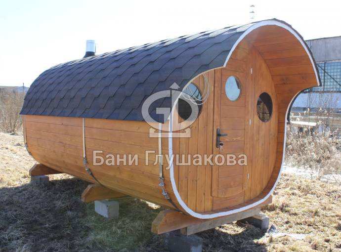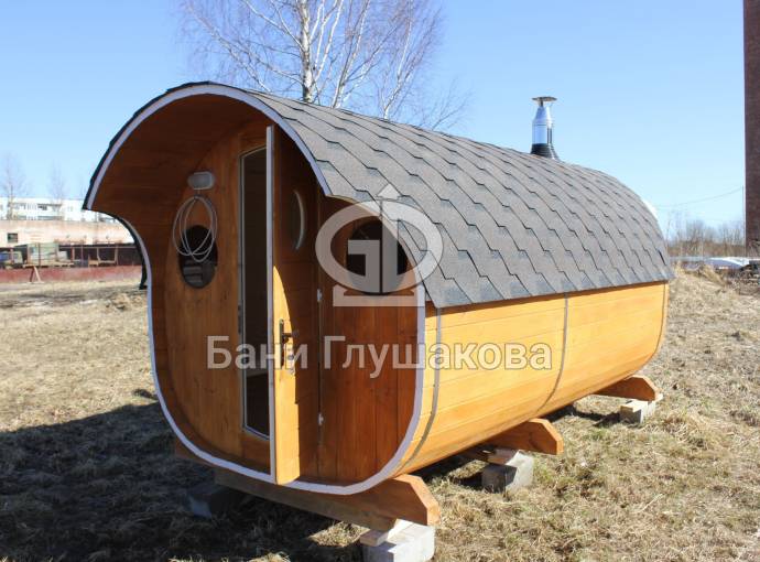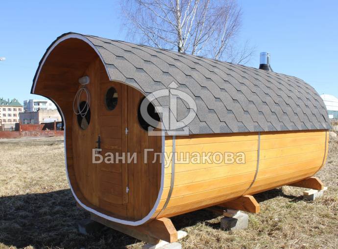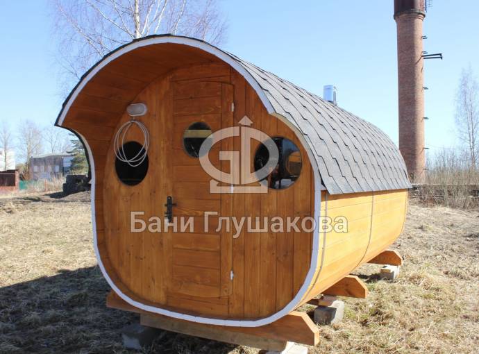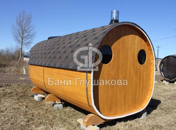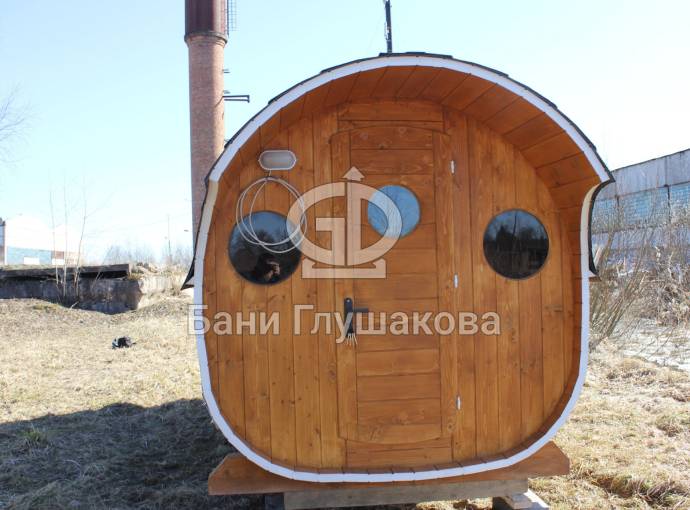 Такого у нас еще не было — перед вами первая модель бани бочки из новой линейки «Пятачок»! Новая форма, прежнее качество и лучшие комплектующие. Мы постарались воплотить в ней функциональность квадробочки и оригинальность круглых бань. Так пол более ровный — это действительно удобно, при этом сохранили красивый сводчатый потолок.