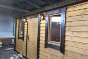 Снаружи покрашена в 2 слоя Биотексом. Основной цвет «Орегон» и обводка «Палисандр».