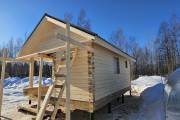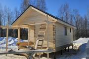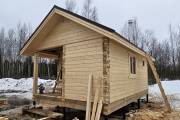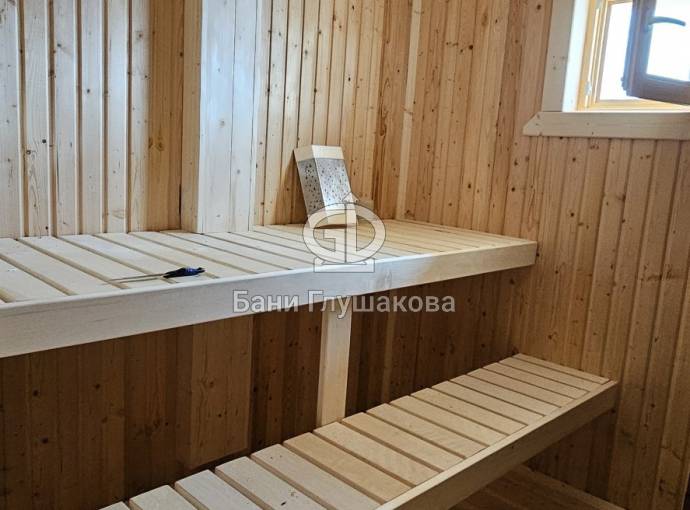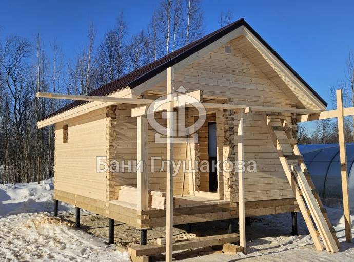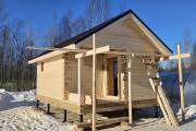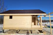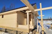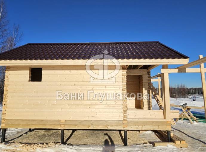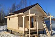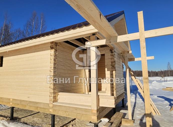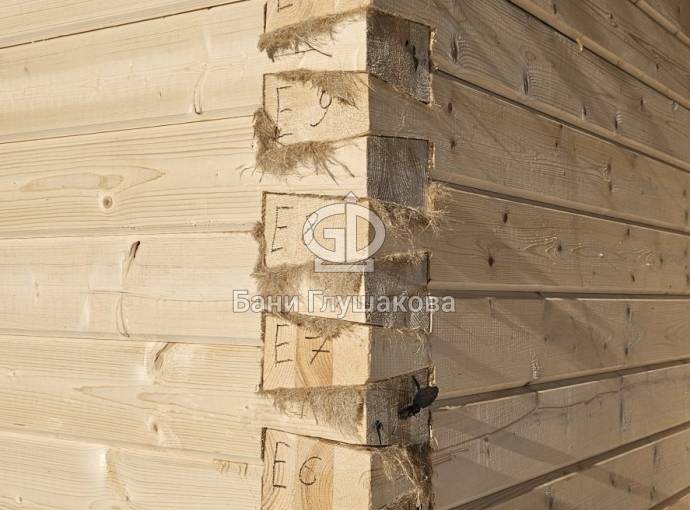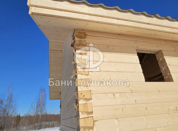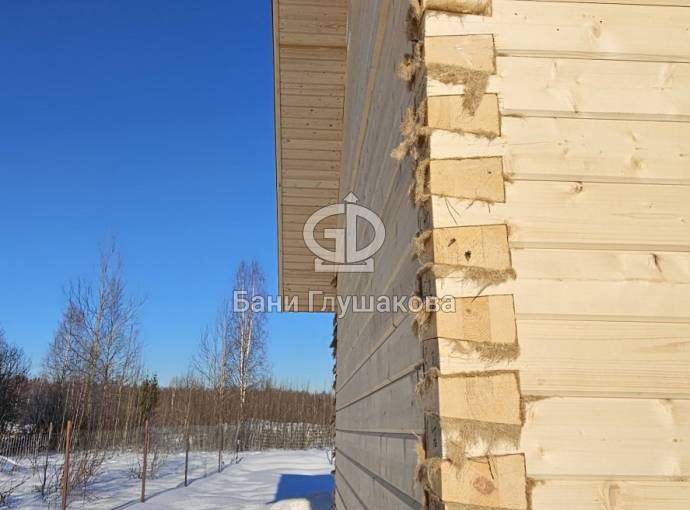 Такую баню можно построить из сухого или клееного бруса. По умолчанию собираем угол в «ласточкин хвост» – лучшее герметичное соединение на сегодняшний день.