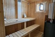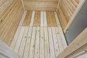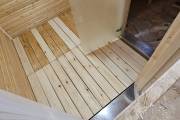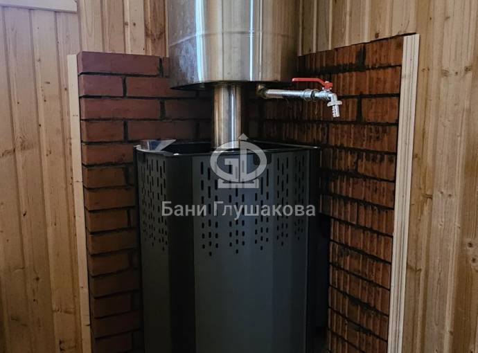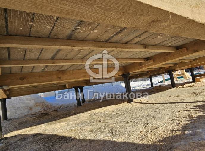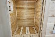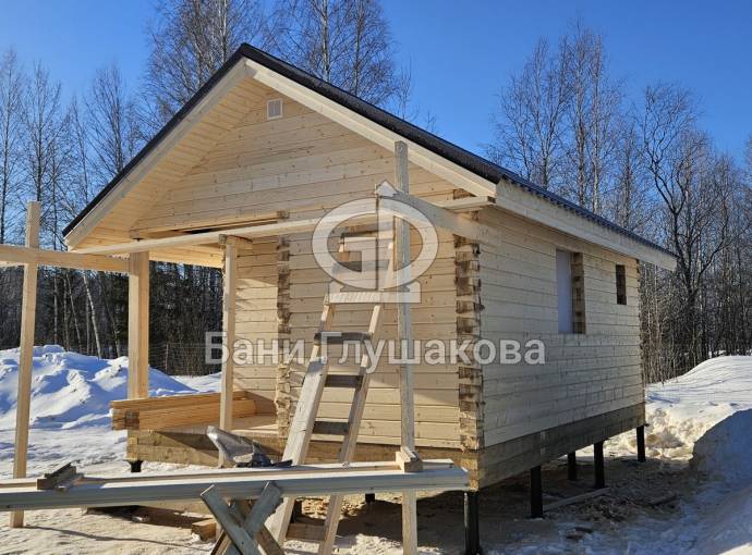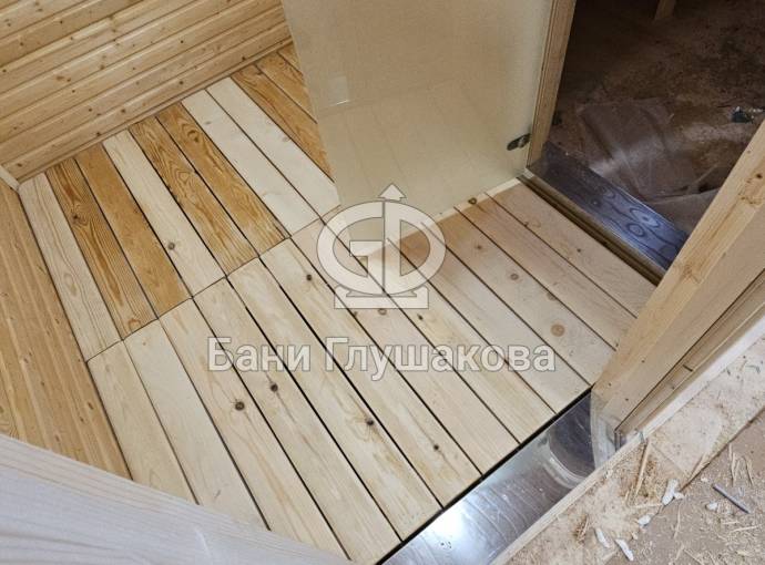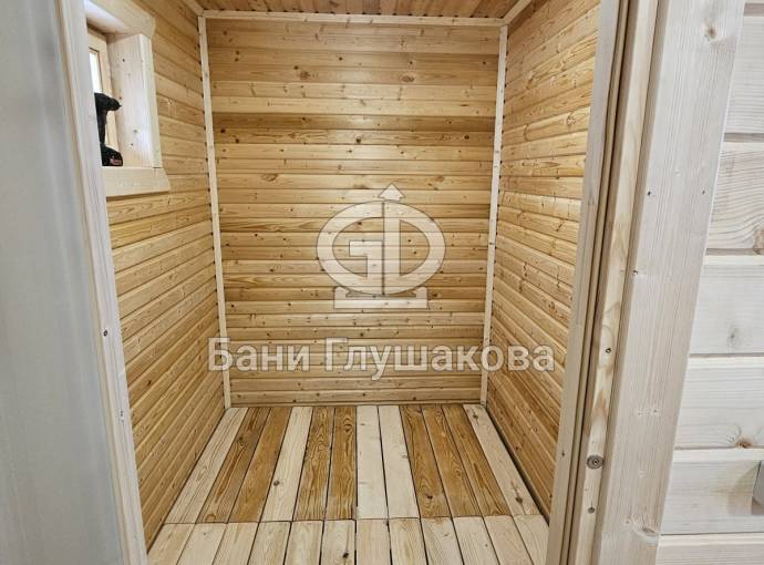 Простой и проверенный временем проект для строительства крепкой надёжной бани из профилированного бруса. Размер 4 на 6 метров позволяет сделать помещения просторными, но быстро прогреваемыми. Пространство внутри разделено на тёплый тамбур, комнату отдыха, помывочное отделение с душем и парную.