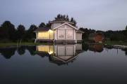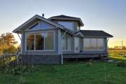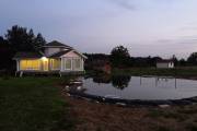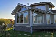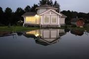 На фотографиях — моя баня-дом на дачном участке. Строили по индивидуальному проекту, заказанному в архитектурном бюро. Материал — сухой профилированный брус из кедра. Все работы выполнены моей компанией и частично мною лично.